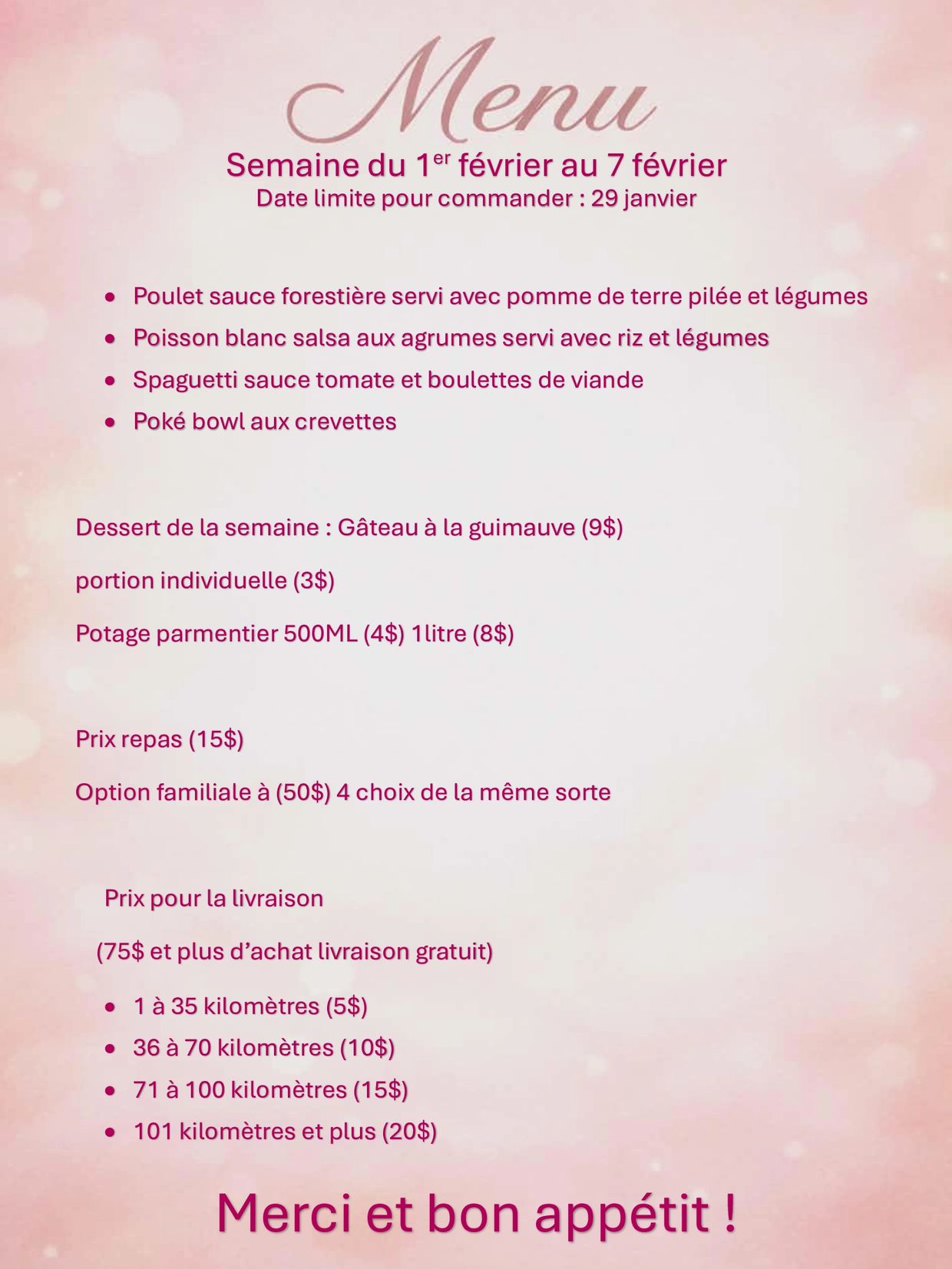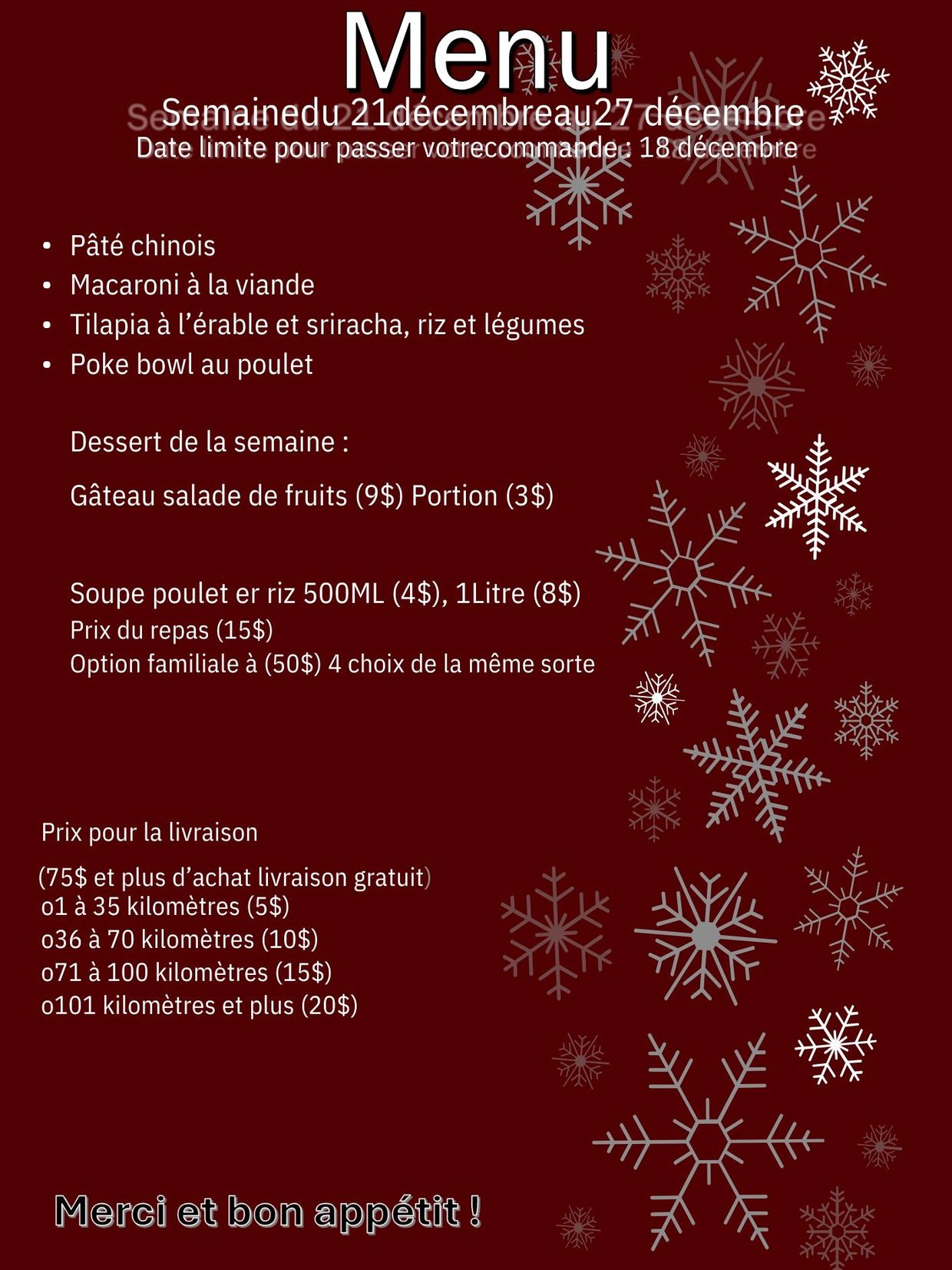 Vous pouvez passer votre commande par courriel, par Messenger de notre page Facebook ou par téléphone